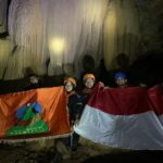 ROKAN HULU – Komando Mahasiswa Pecinta Alam (Kommapala) Winnetou Fakultas Teknik Universitas Riau (Unri) mengibarkan bendera Merah Putih di dalam perut bumi